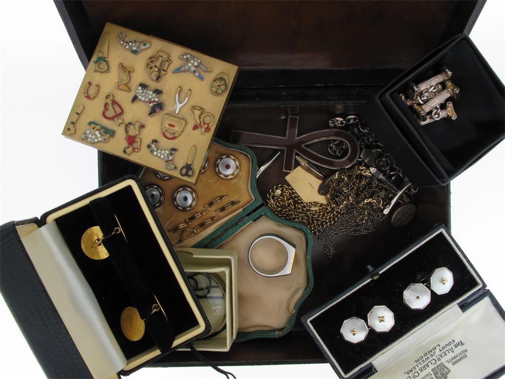 A box containing assorted cufflinks