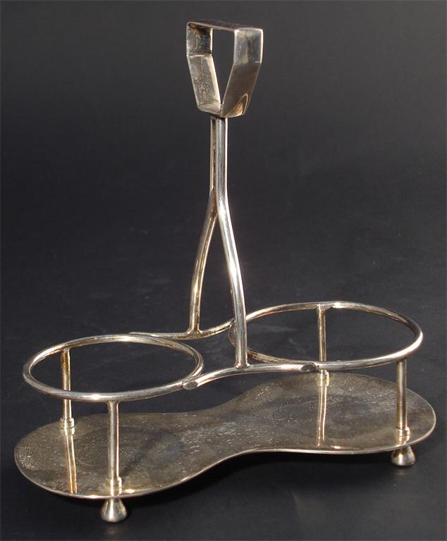 A Hukin & Heath electroplated condiment holder in the style of Dr Christopher Dresser