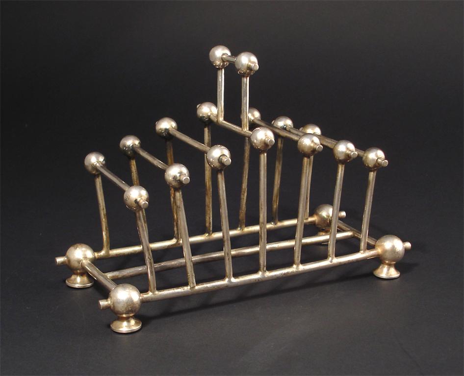 An electroplated rod and ball construction letter rack in the style of Dr Christopher Dresser