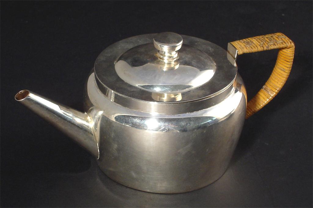 A Hukin & Heath silver Picnic teapot and cover designed by Dr Christopher Dresser