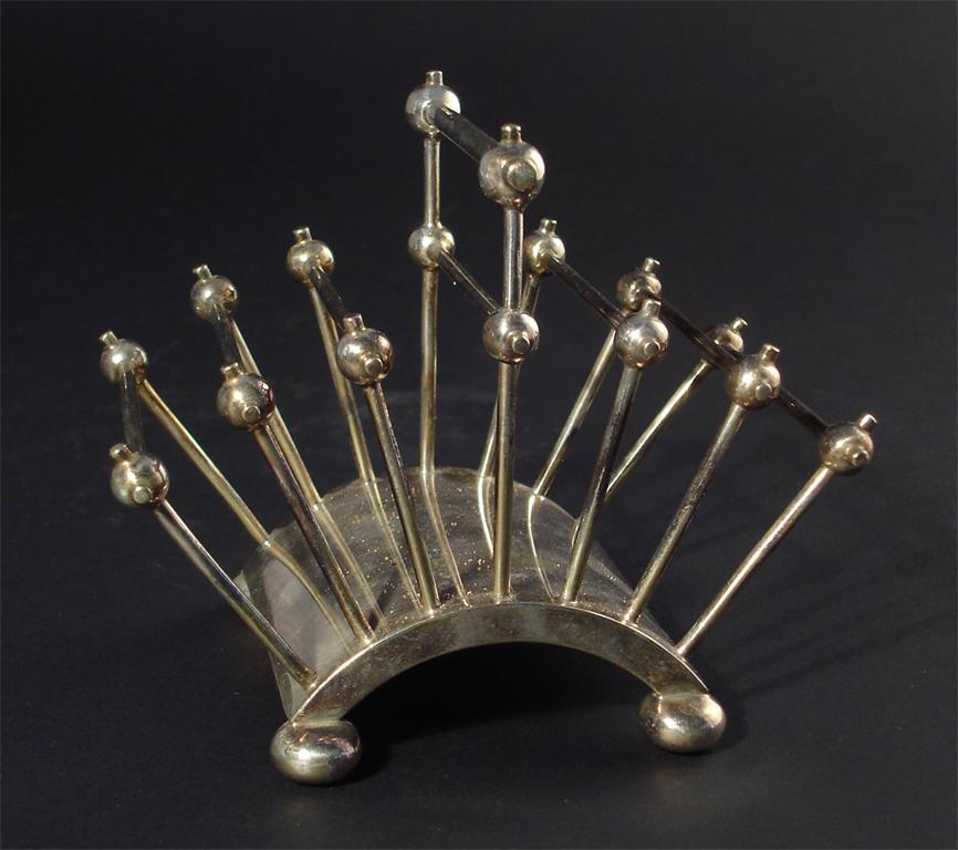 A Hukin and Heath electroplated letter rack, model 2556, rod and ball construction, stamped marks, regd diamond 12.5cm. high