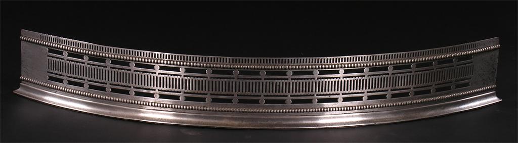 A 19th century polished steel bow fender, pierced with applied bead bands, 6.25in (16cm) h, 45in (114.3cm) w, 9.5in (24cm) d.