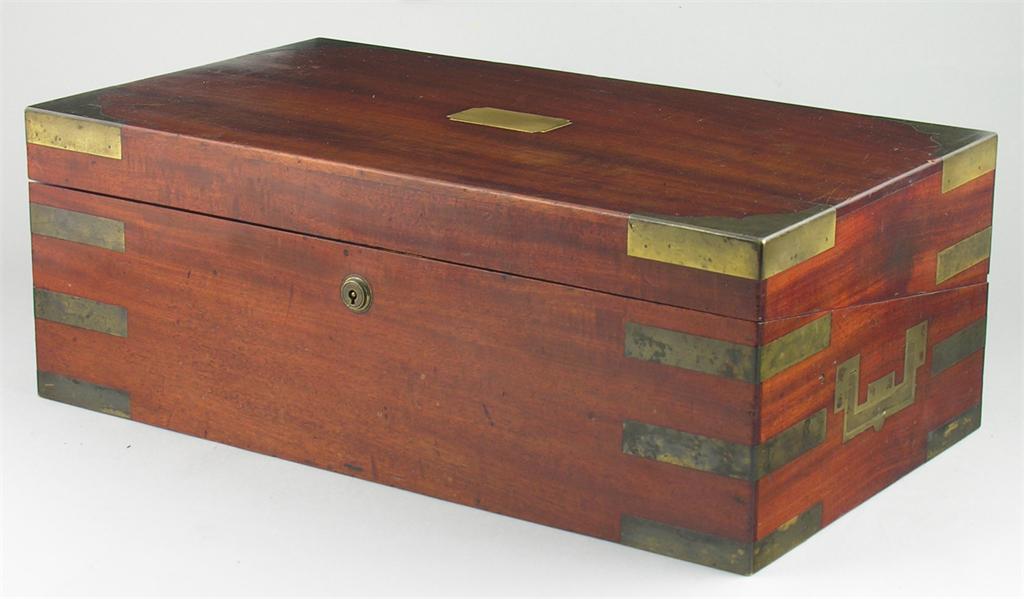 An early 19th century mahogany and brass bound writing slope