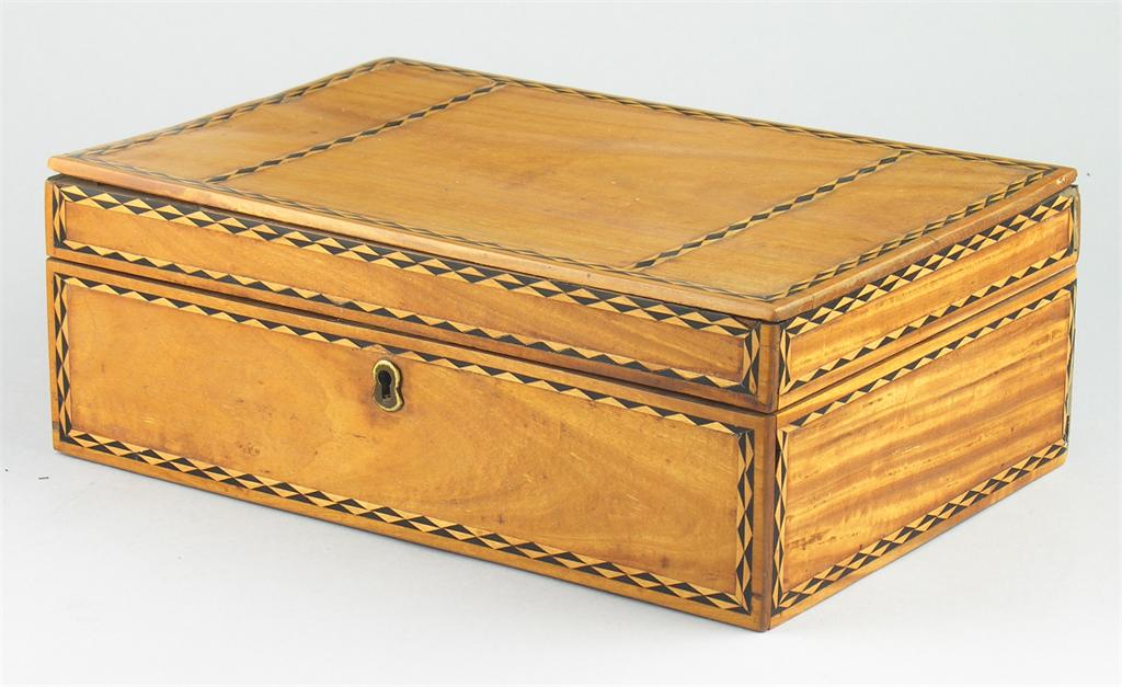An Anglo-Indian satinwood and parquetry inlaid work box
