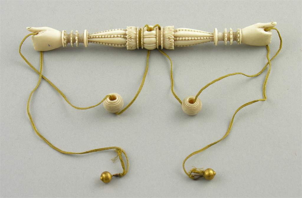 A 19th century carved ivory hands and balls puzzle, 6.25in (16cm) l.