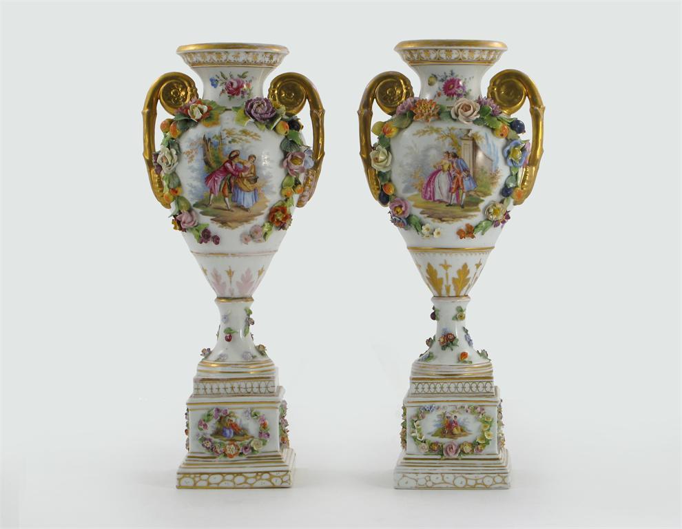 A large pair of Dresden porcelain vases