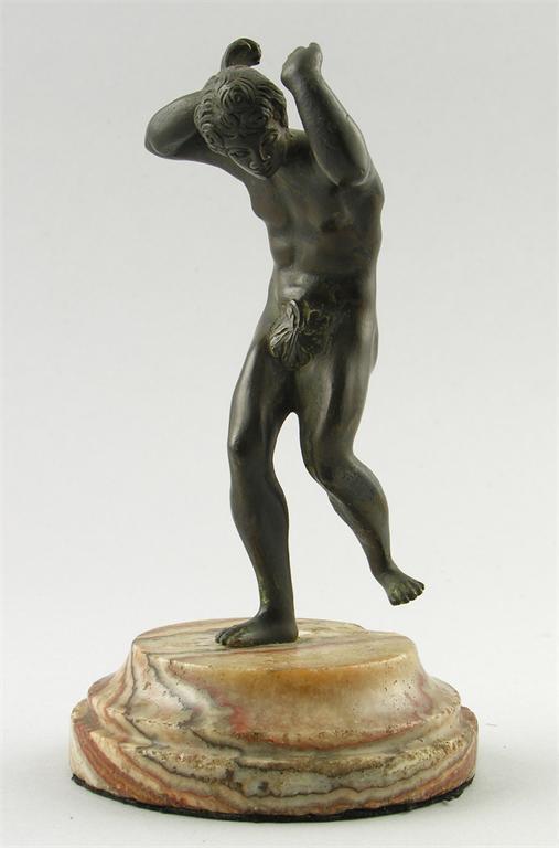 A Venetian bronze figure, of Adam being cast out of Eden, 5.75in (14.5cm) h, on a turned marble base, c.1600.