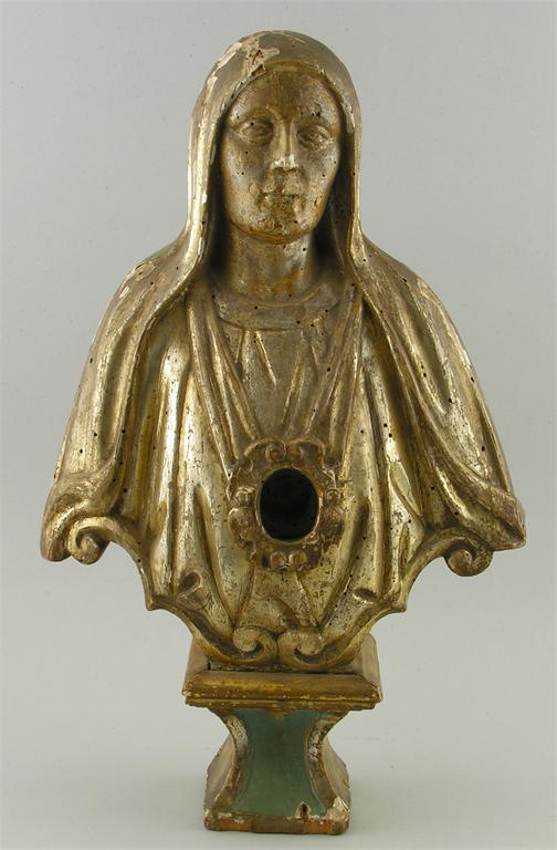 An Italian carved giltwood and gesso reliquery bust of the Virgin