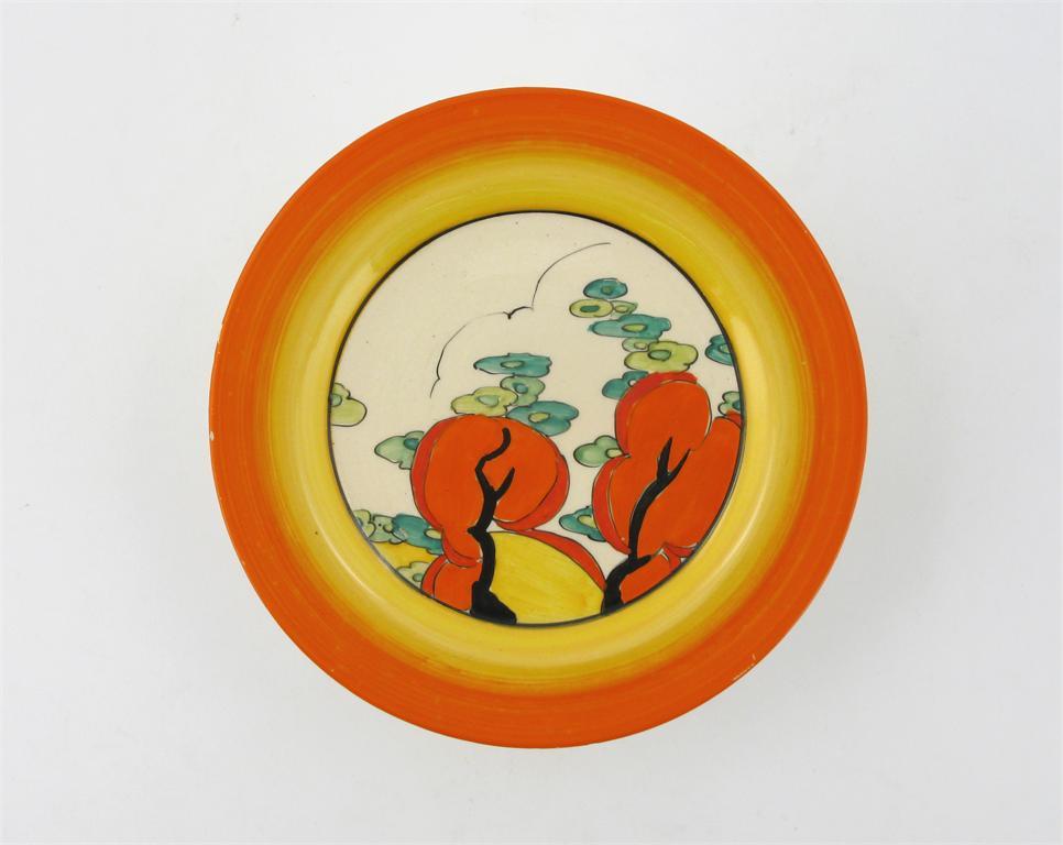 'Orange Erin' a Clarice Cliff Bizarre side plate painted in colours printed factory mark 15cm. diam.
