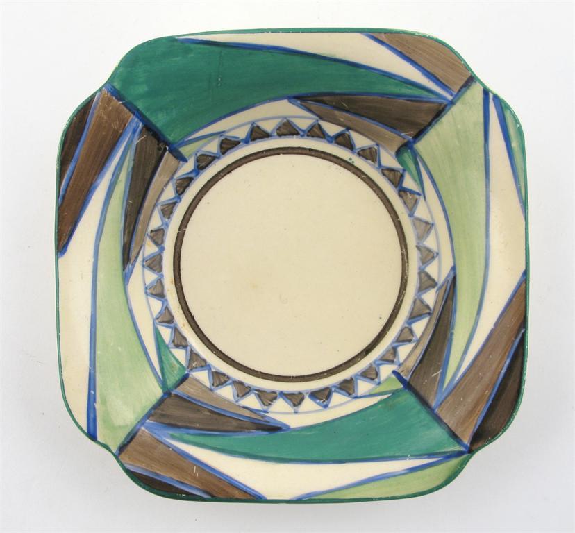 'Killarney' a Clarice Cliff Bizarre square dish painted in colours printed factory mark 12cm. wide