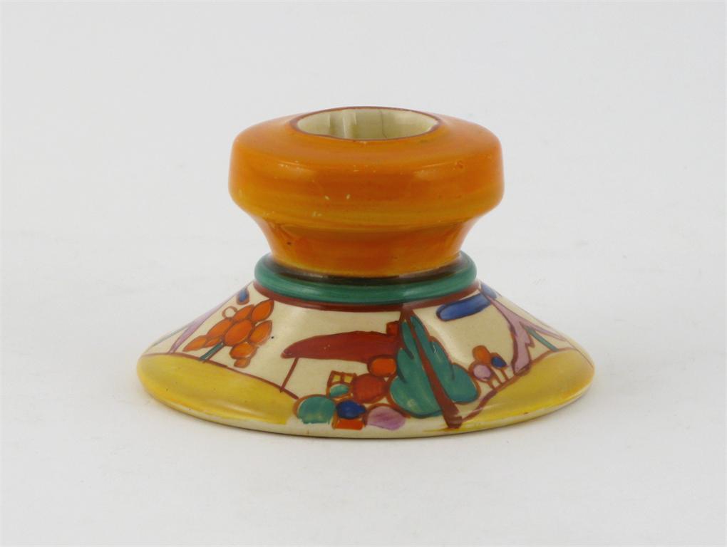 'Seven Colour Secrets' a Clarice Cliff Fantasque Bizarre 331 candlestick painted in colours...
