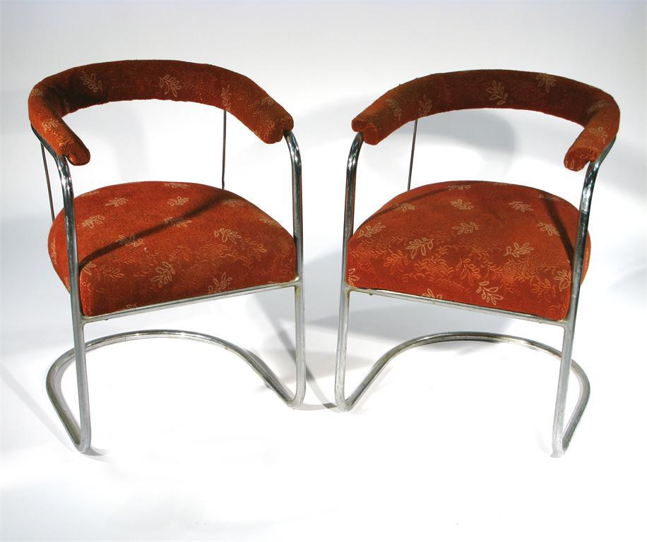 A pair of PEL Modernist chrome arm chairs designed by Olivier Barnard, with horse hair padded seats unsigned 73cm. high