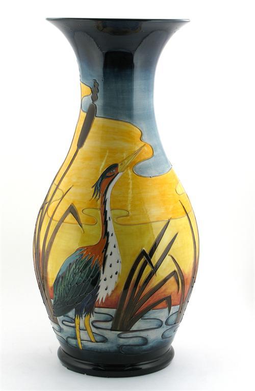 'Heron - Reeds at Sunset' a large Moorcroft Pottery vase designed by Philip Richardson