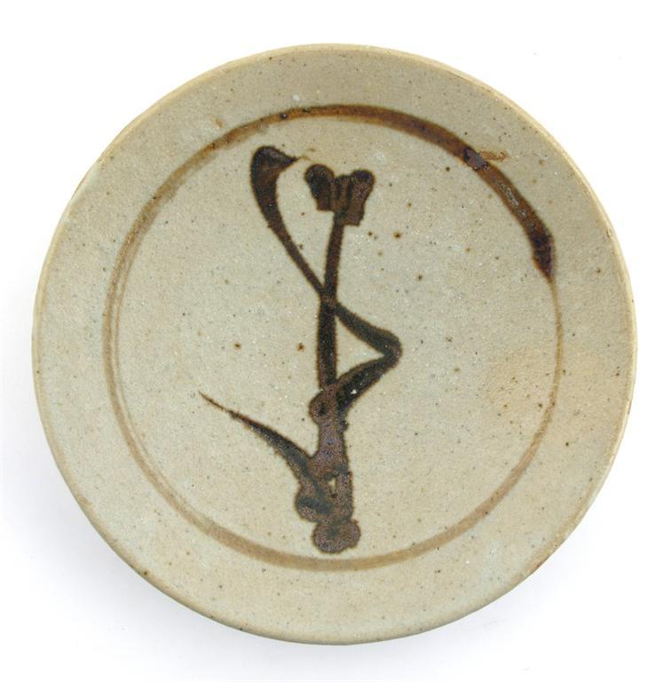 Shoji Hamada (1894-1978) a tea plate painted with a simple bamboo motif, unsigned 19cm. diam.