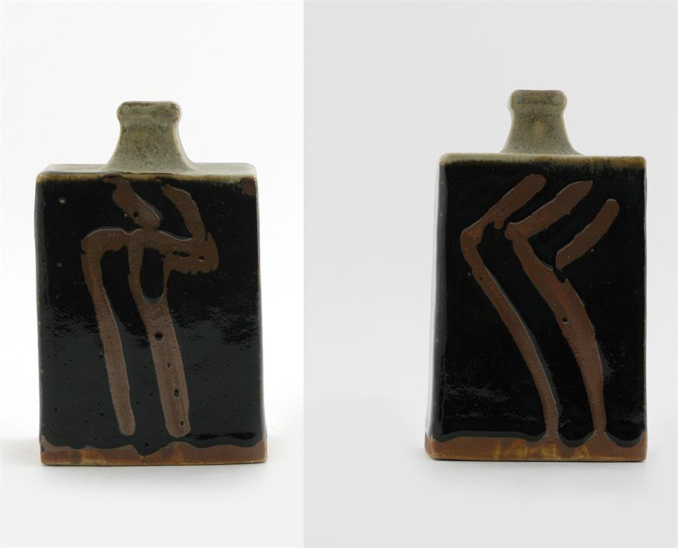 Shoji Hamada (1894-1978) a slab built bottle vase, resist decorated in rest under tenmoku with a combed design, unsigned 20cm. high
