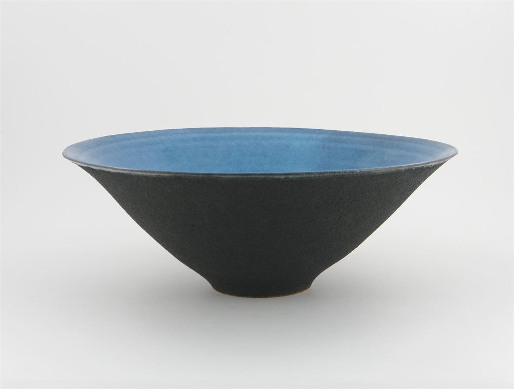 Sotis Filippides (born 1963) a large bowl with flaring rim, the exterior textured black, the interior glazed blue impressed seal mark 40.5cm. diam.