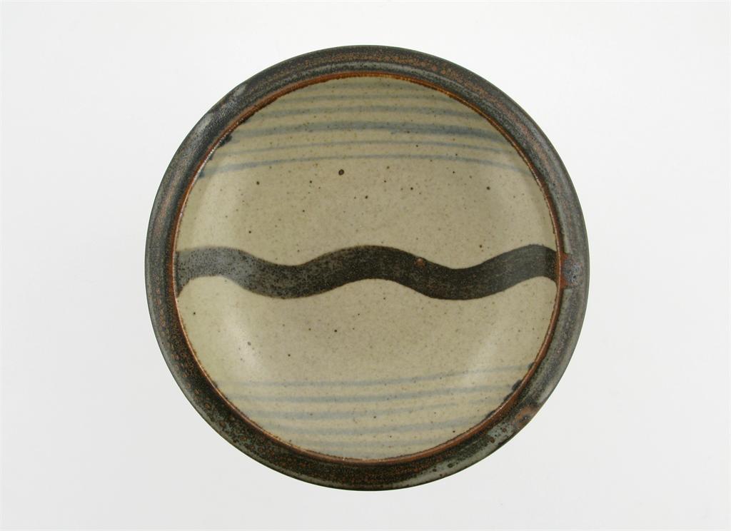 Leach Pottery a stoneware plate painted in tenmoku