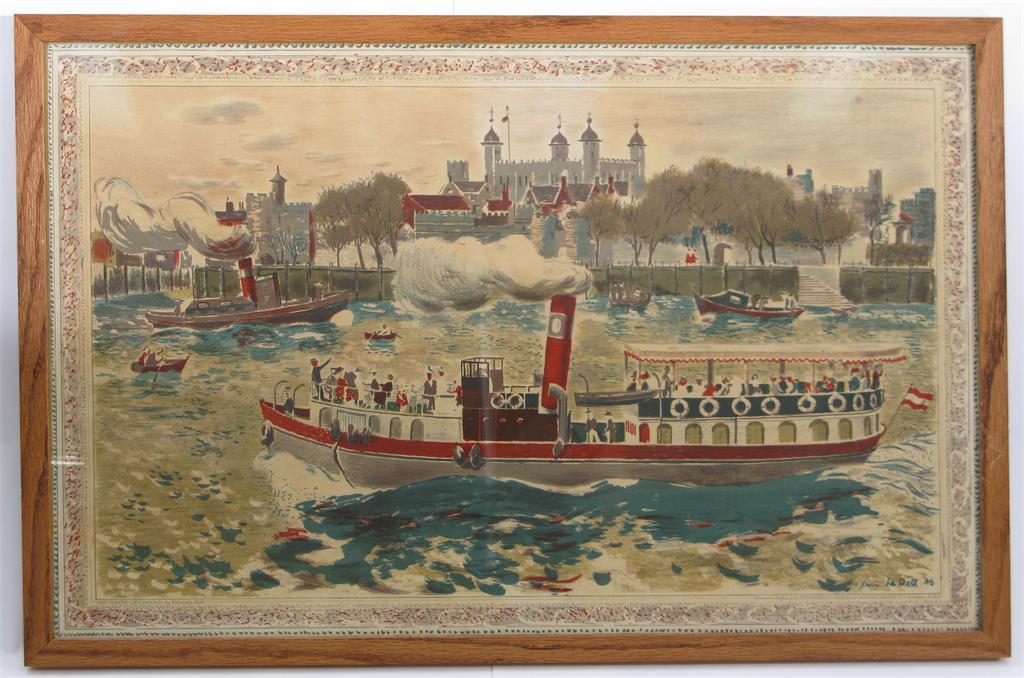 'The Tower of London' a lithographic School Print by Edwin La Dell, printed by the Banyard Press, framed signed in the print dated 46 image 75 x 49cm.