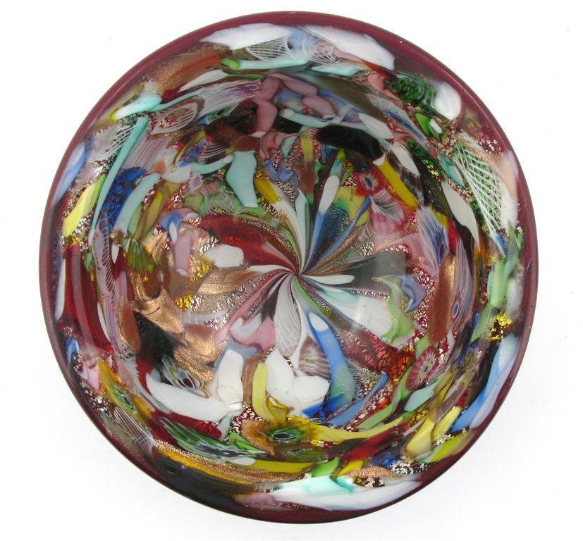 An Italian glass bowl in the manner of Dino Martens, internally decorated in colours and aventurine, unsigned 17.5cm. diam.