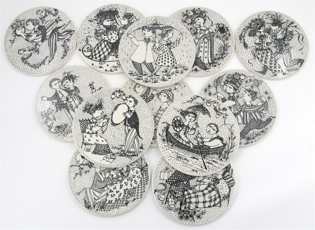 A set of twelve Rosenthal Pottery Month wall plaques designed by Bjorn Wiimblad