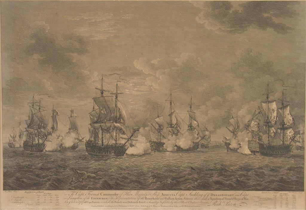 After Richard Paton. British Naval engagements between the French, six engravings, 14.5 x 23in (37 x 58.5cm.) approx. (6)