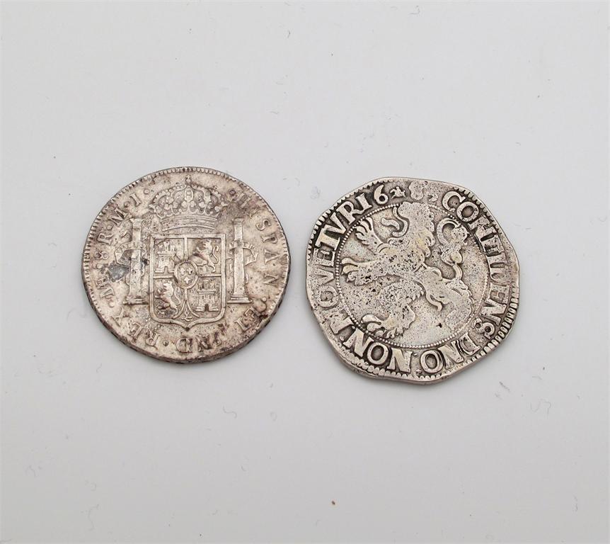 Low Countries, Kampen, Lion Daalder, 1685 (KM 35.4), fine; Peru, Charles III of Spain, 8-Reales, 1777 (KM 78), nearly very fine. (2)