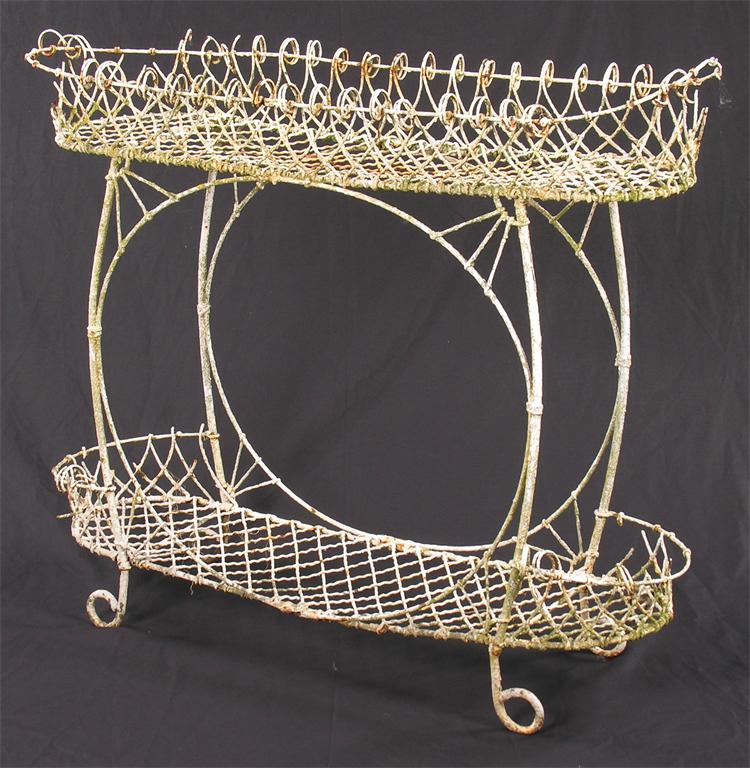 A Regency painted wirework planter, the oblong tiers with a circular aperture, 31.5in (80cm) h, 39in (99cm) w.