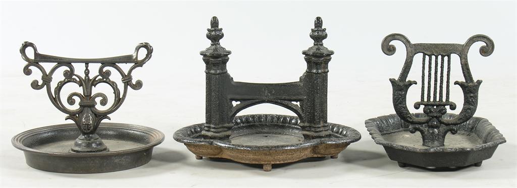 A cast iron boot scraper, the lyre shape stem to a rectangular base with canted corners, 9.5in (24cm) h.