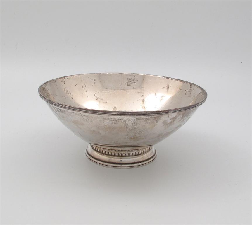 An American silver Art Deco bowl, tapering circular form, on a raised beaded circular foot, diameter 20.8cm.
