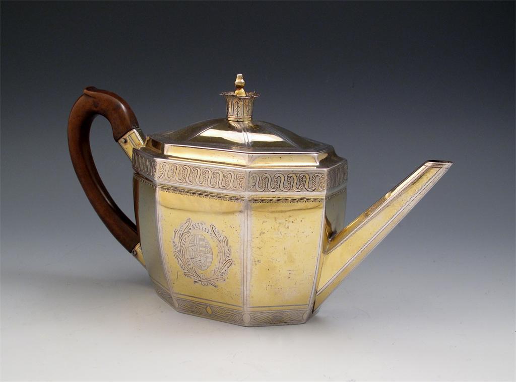 A George III silver-gilt teapot,