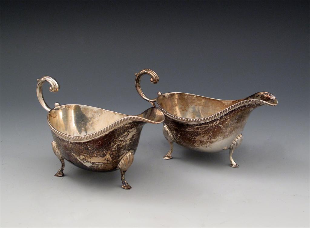 A pair of silver sauce boats