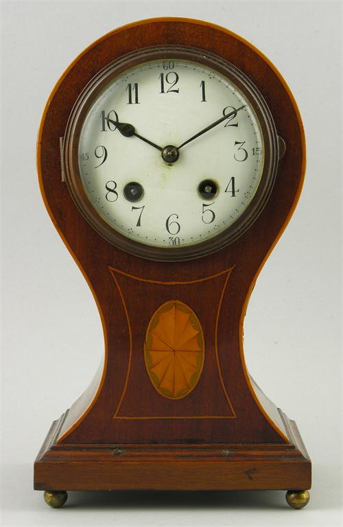 A French mahogany and paterae inlaid balloon cased mantel clock