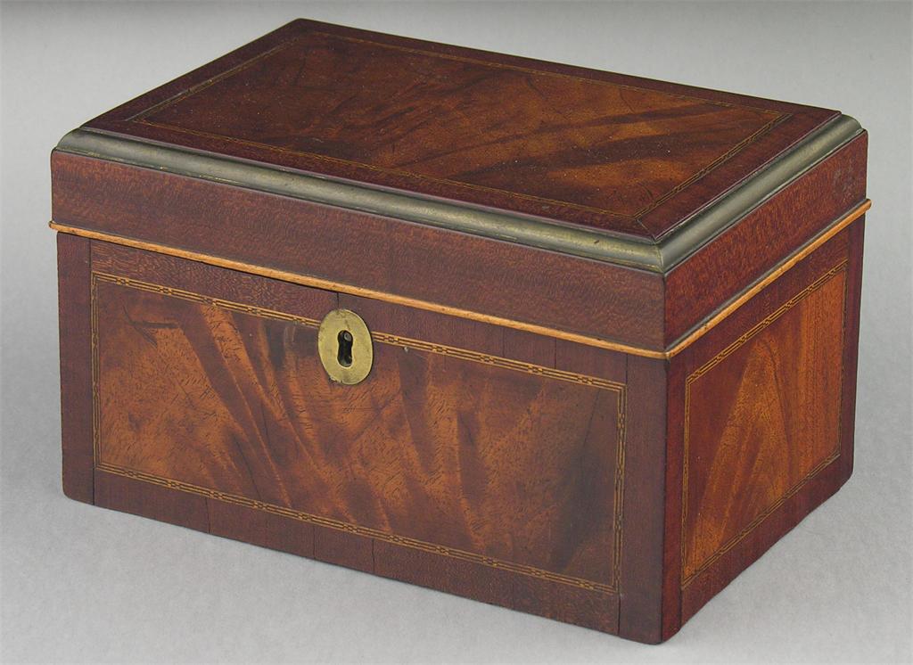 A mahogany and parquetry strung box, the hinged cover with a brass moulded edge, 19th century and later, 4.5in (11.4cm) h, 7.5in (19cm) w.