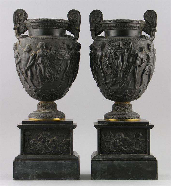 A pair of late 19th century bronze copies of the Townley Vases