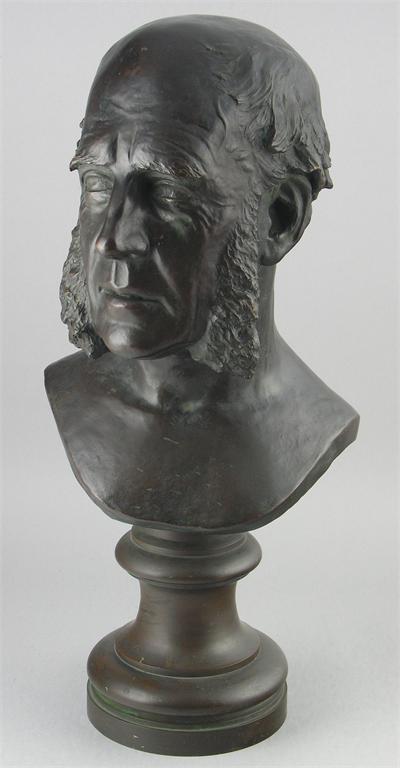 A Victorian bronze bust of a Gentleman, on a turned socle, 22.5in (57cm) h.