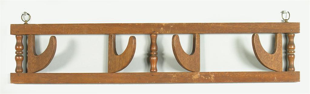 A mahogany cravat rack, with turned supports and four hinged arms, 5.5in (14cm) h, 26.25in (66.4cm) w.