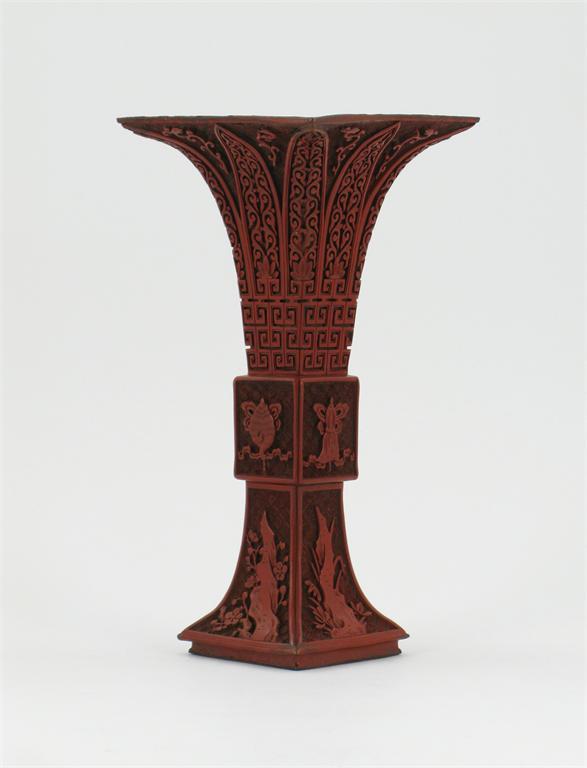 A rare Chinese red cinnabar lacquer gu beaker vase