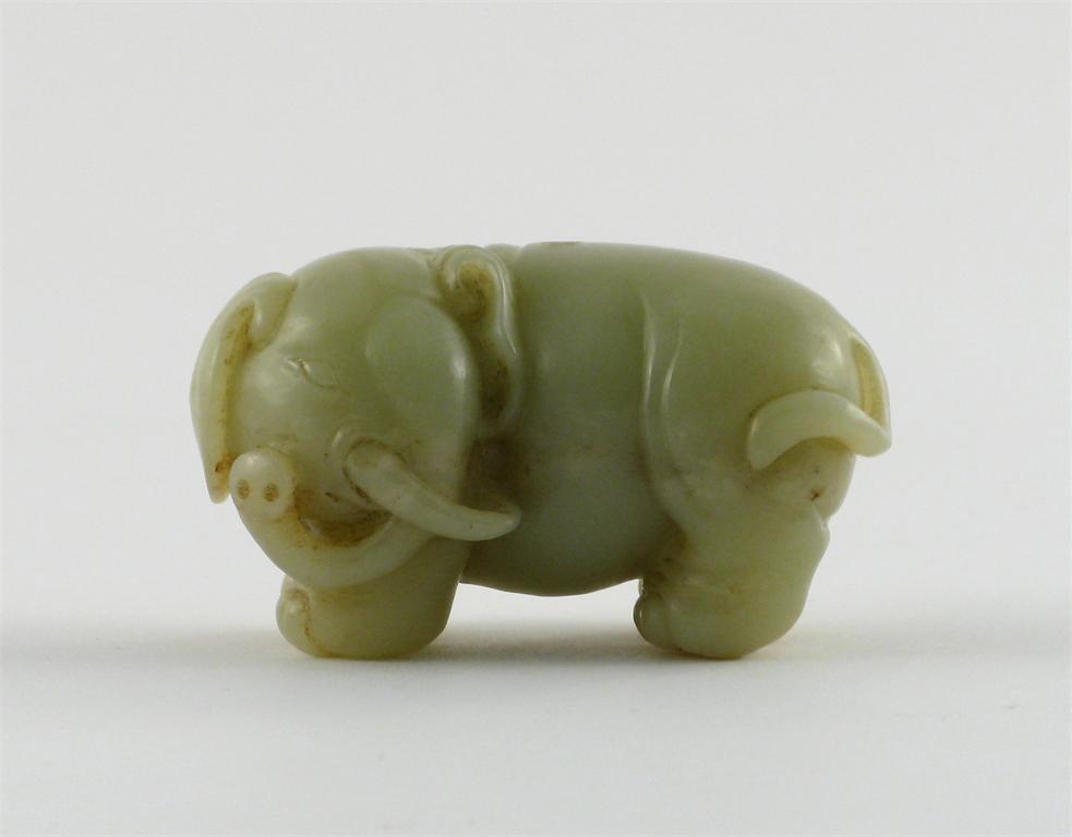 A Chinese pale yellowish-green jade carving of an elephant