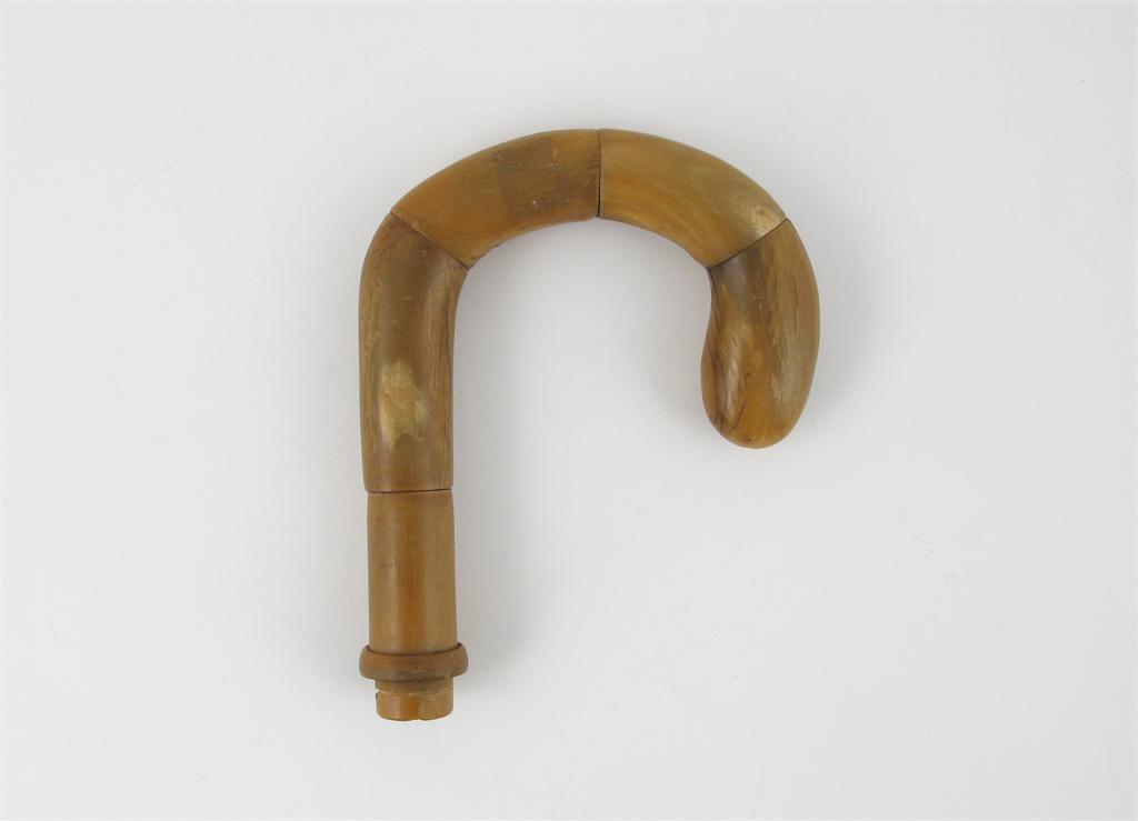 A horn umbrella or cane handle, probably Indian, c.1900, worm damage, 15cm.