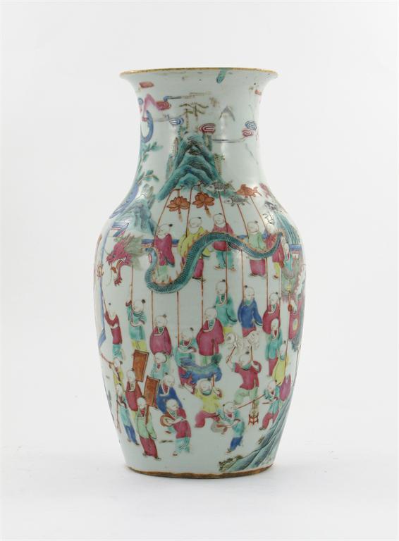 A Chinese Canton famille rose vase, painted with figures including a procession of children, 19th century, 36cm.