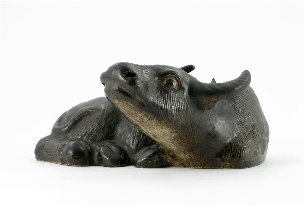 A Chinese porcelain model of a recumbent water buffalo