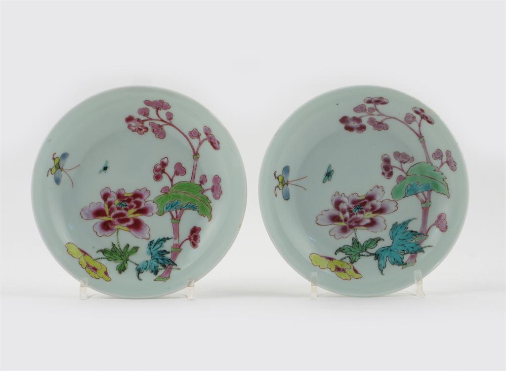 A pair of Chinese famille rose saucer dishes