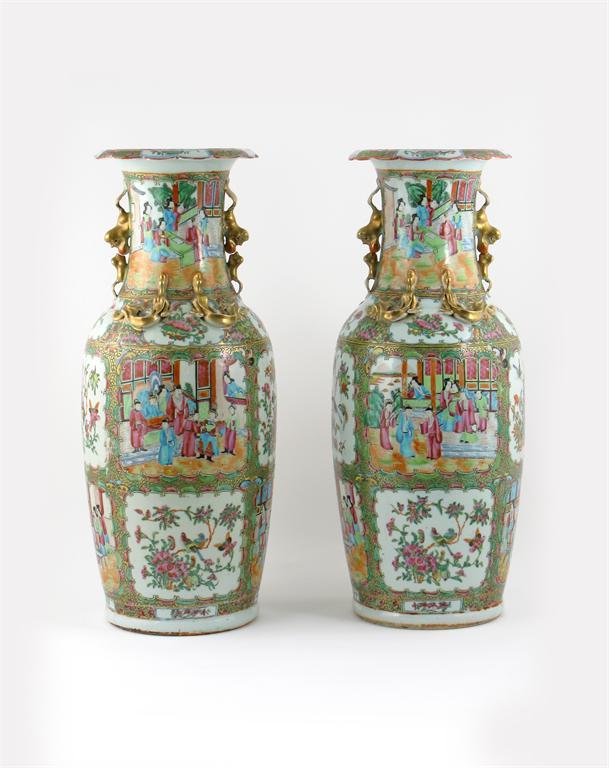A large pair of Chinese Canton famille rose vases