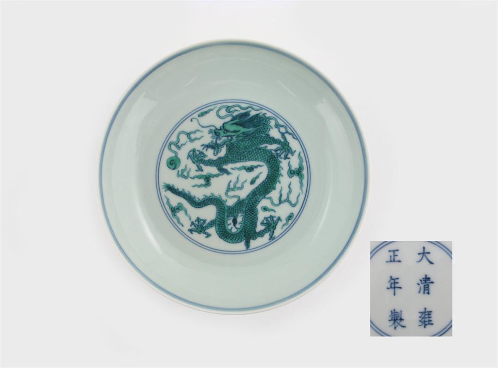 A Chinese green dragon saucer dish