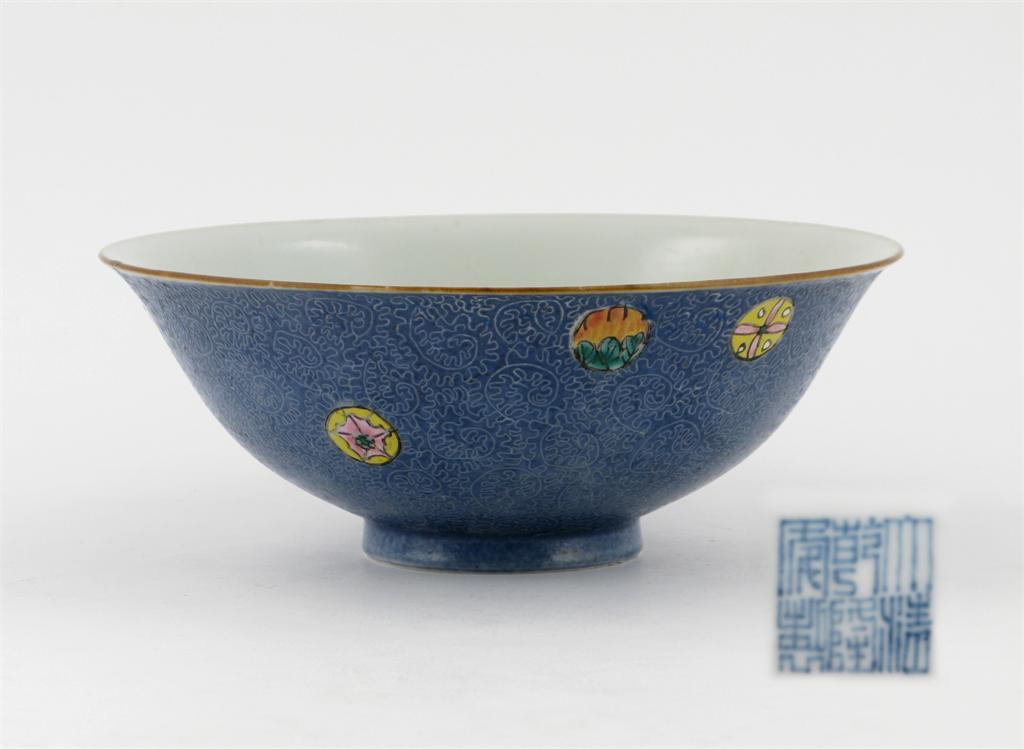 A Chinese blue ground bowl