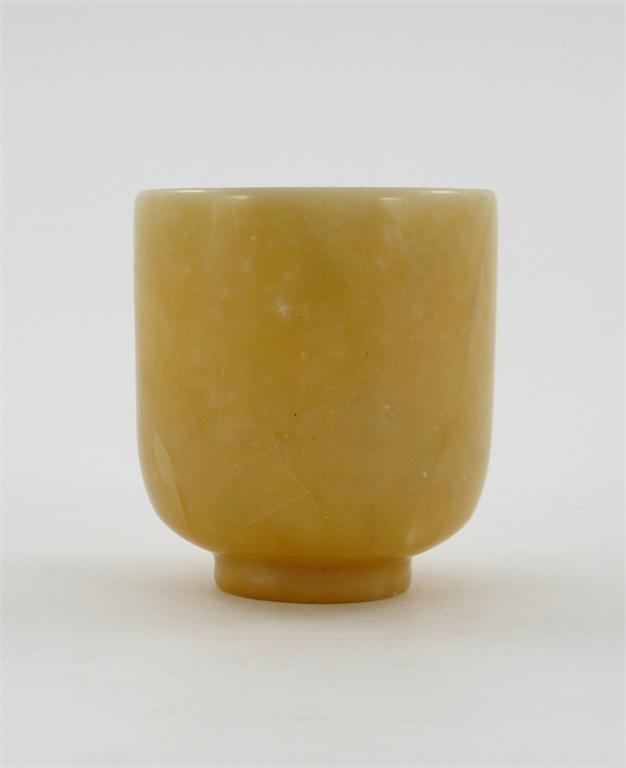 A yellow soapstone U-shaped bowl, with a straight short footrim, probably c.1900, 6.6cm.