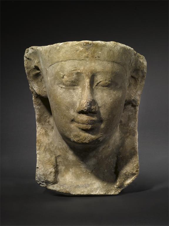 An Egyptian gypsum head of a pharaoh, Ptolemaic c.300 BC, surface chips and staining, 28cm. Provenance: The Ernest Ohly collection.