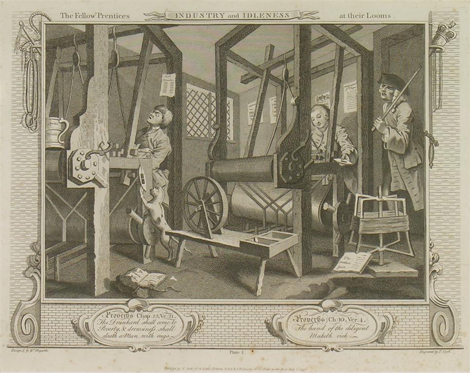 After William Hogarth. 'Industry and Idleness,' twelve engravings, 11 x 14in (28 x 35.5cm). (12)