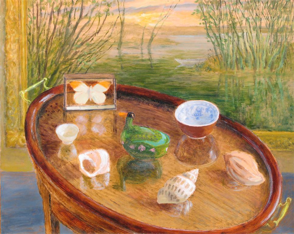 Felicity Charlton (1913-2009) Hebomoia Glaucippe; Still life with trees beyond; Still life on a...