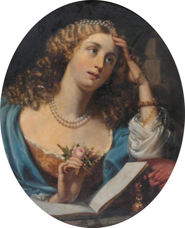 Theodor Jensen (19th Century) Portrait of a girl writing Signed and dated 1853 Oil on canvas laid...